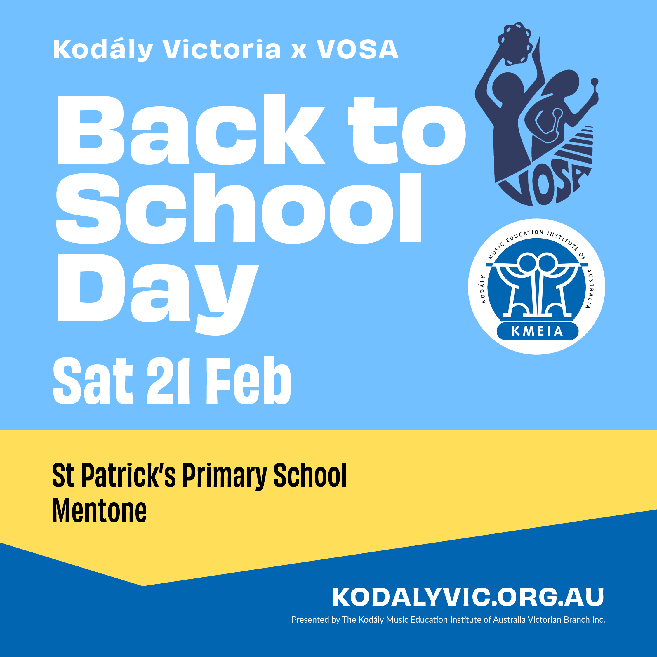 Join Kodály Vic and the Victorian Orff Schulwerk Association (VOSA) for our annual Back to School Day! The morning will include workshops run by Kodály and Orff experts! Brush off the cobwebs and kick-start the New Year. Be inspired by fresh and innovative ideas!